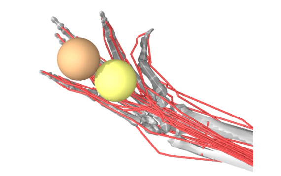 Efficient musculoskeletal simulators and powerful learning algorithms provide computational tools to tackle the grand challenge of understanding biological motor control. Our winning solution for the inaugural NeurIPS MyoChallenge leverages an approach mirroring human skill learning. Using a novel curriculum learning approach, we trained a recurrent neural network to control a realistic model of the human hand with 39 muscles to rotate two Baoding balls in the palm of the hand. In agreement with data from human subjects, the policy uncovers a small number of kinematic synergies even though it is not explicitly biased towards low-dimensional solutions. However, selectively inactivating parts of the control signal, we found that more dimensions contribute to the task performance than suggested by traditional synergy analysis. Overall, our work illustrates the emerging possibilities at the interface of musculoskeletal physics engines, reinforcement learning and neuroscience to advance our understanding of biological motor control.